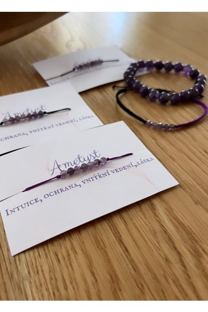 Dámský náramek z minerálů - Ametyst, provázkový náramek, 4 mm