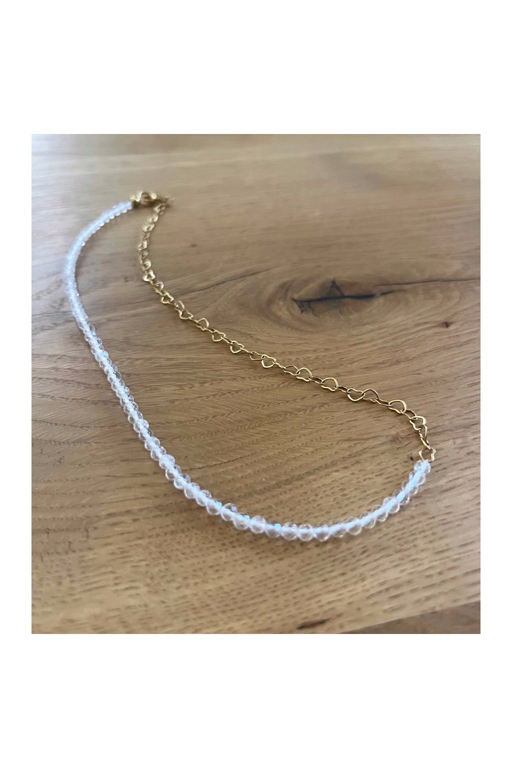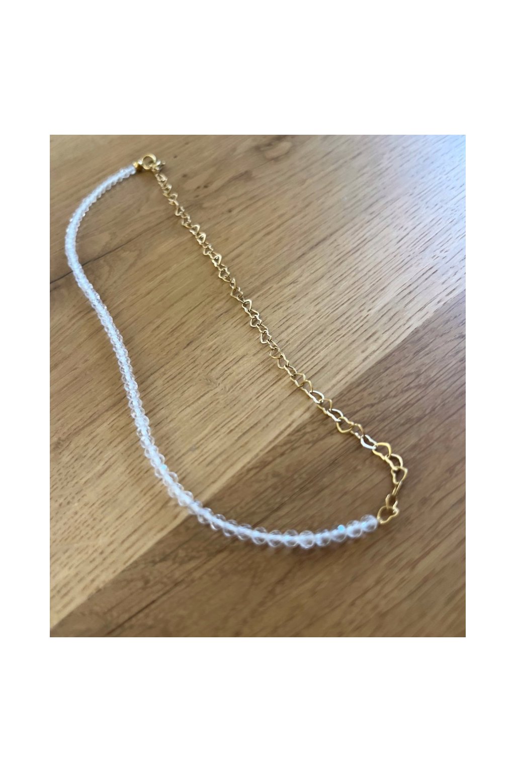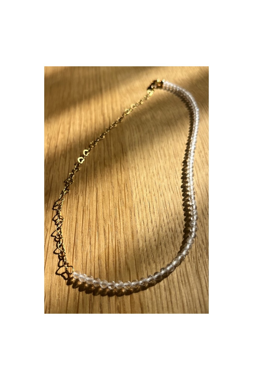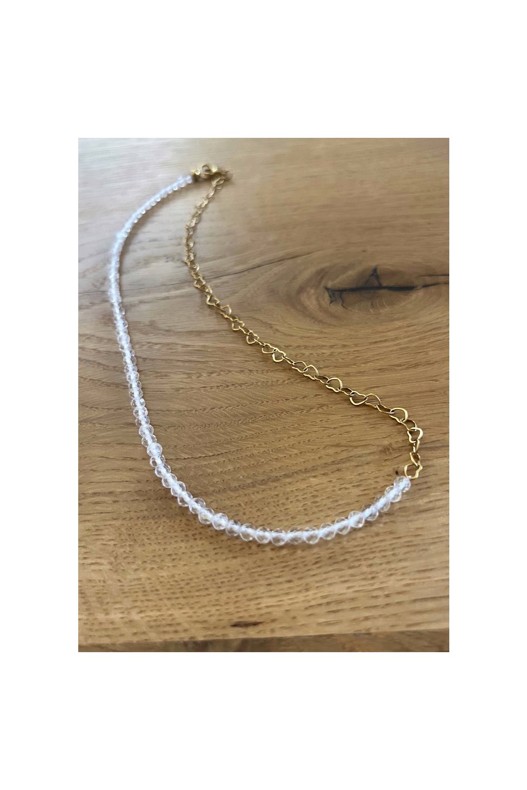 Dámský náhrdelník z minerálů - Křišťál, 3 mm, srdíčkový řetízek ocel zlatý