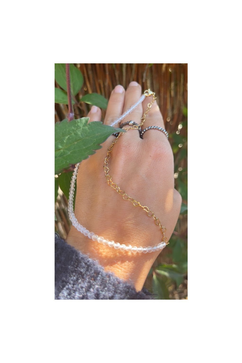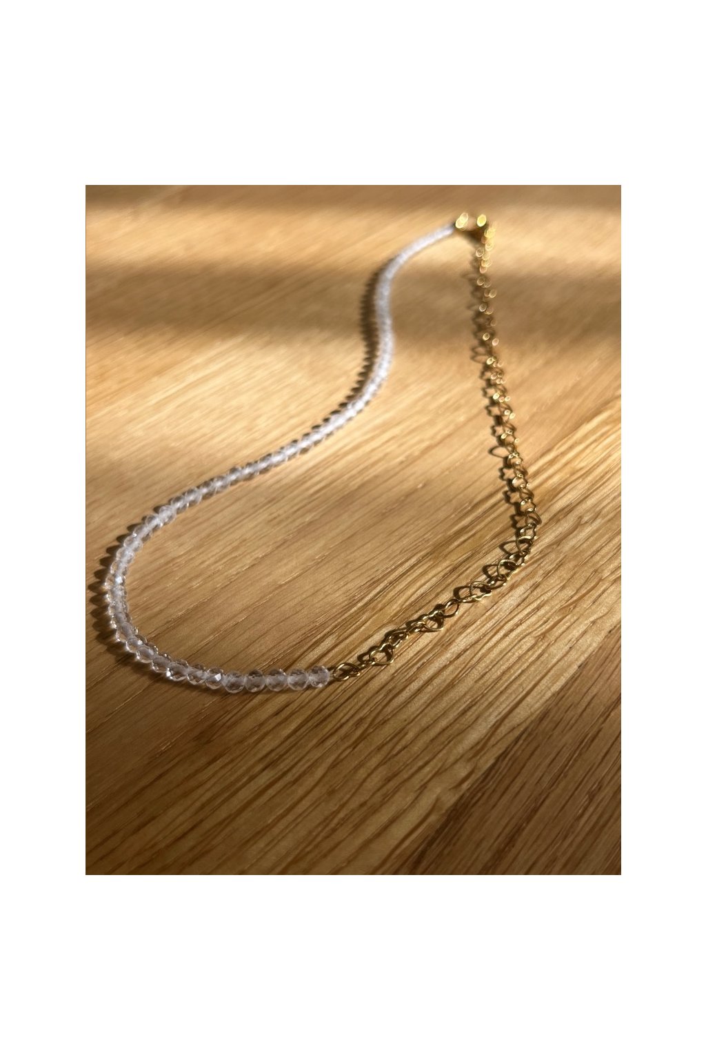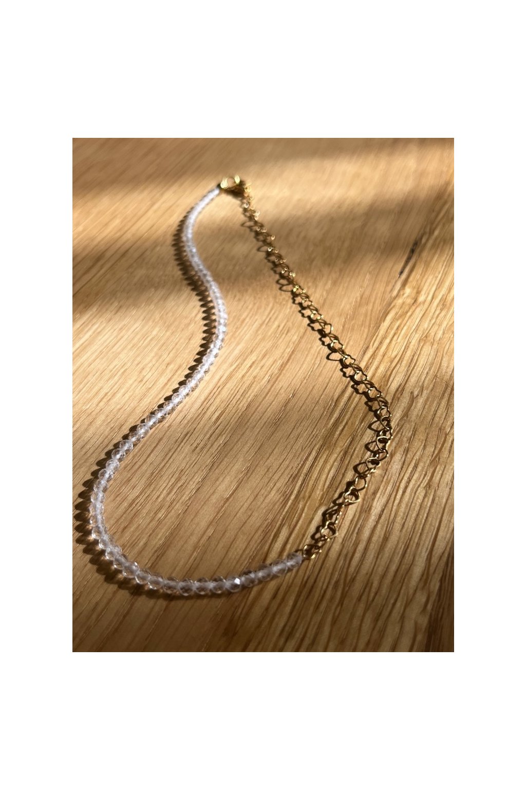 Dámský náhrdelník z minerálů - Křišťál, 3 mm, srdíčkový řetízek ocel zlatý
