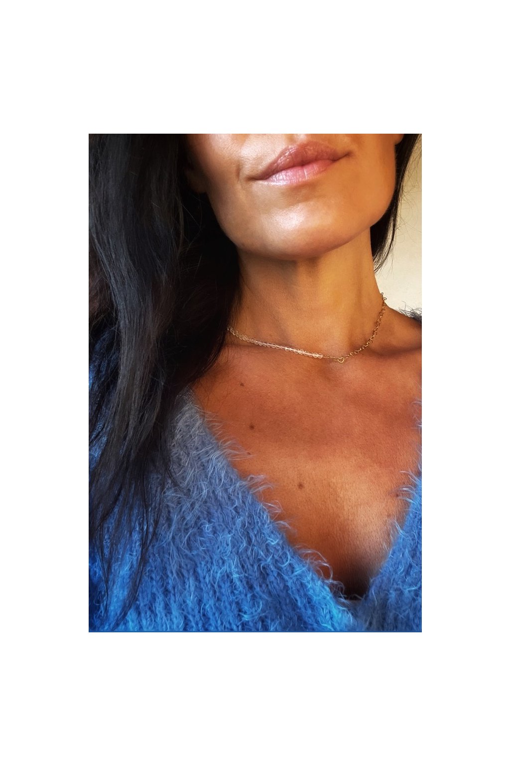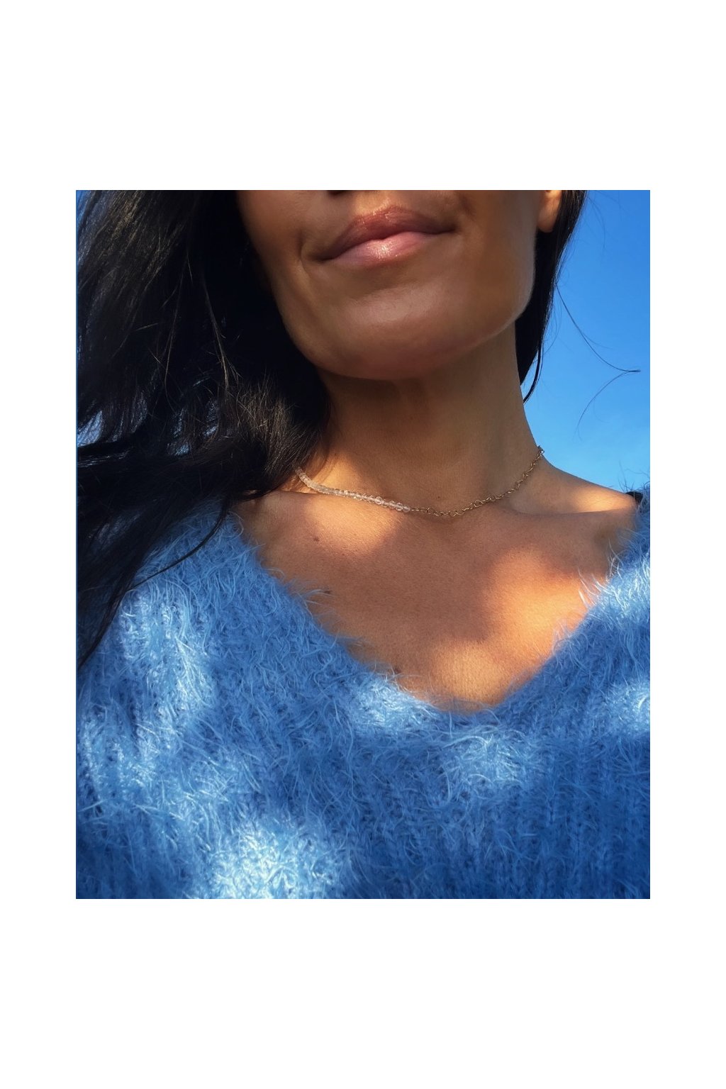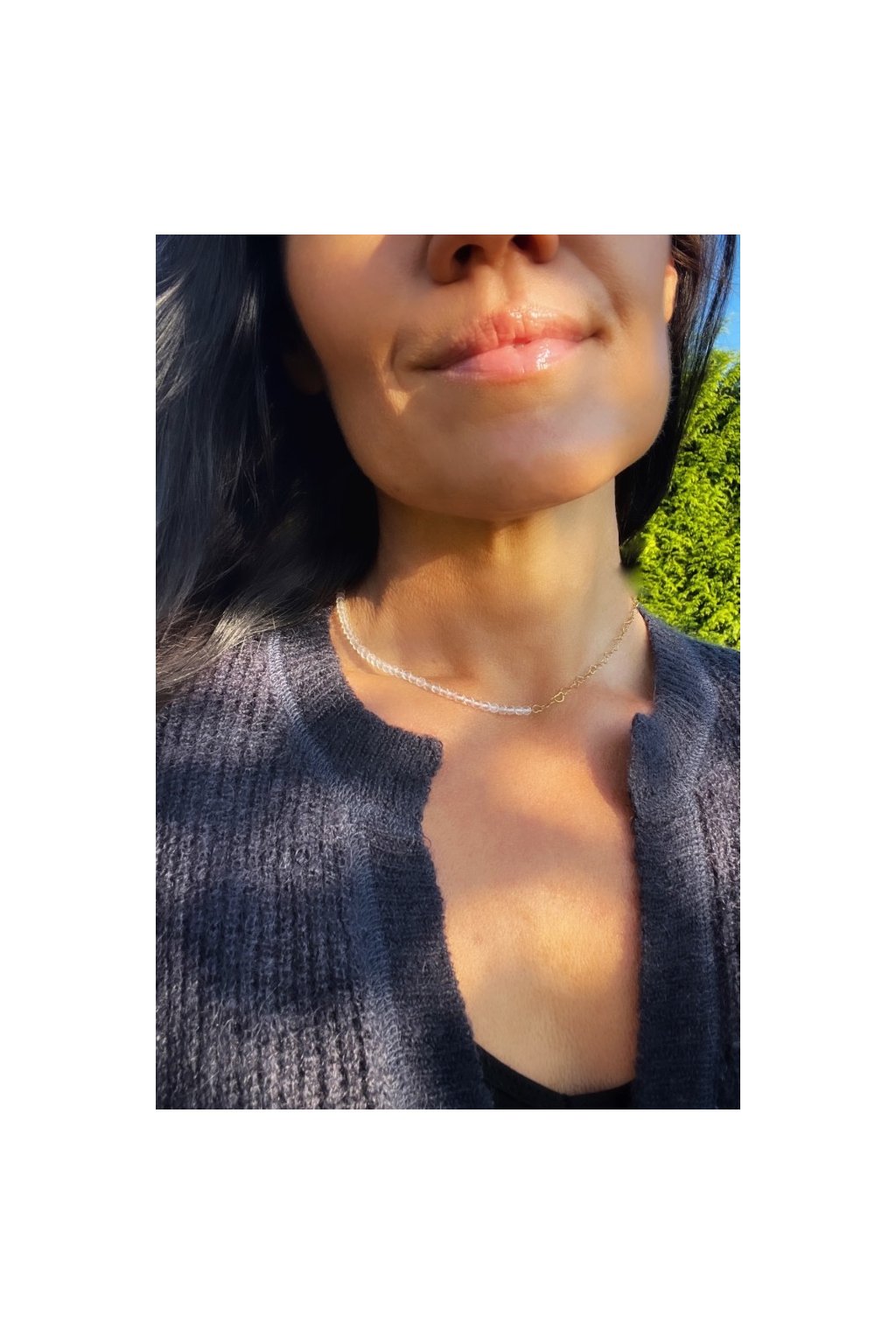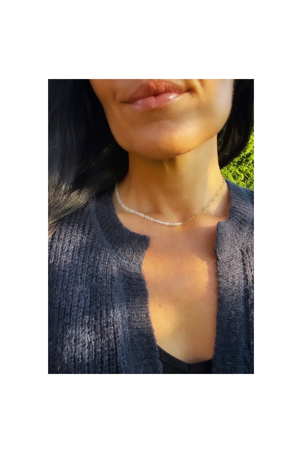 Dámský náhrdelník z minerálů - Křišťál, 3 mm, srdíčkový řetízek ocel zlatý