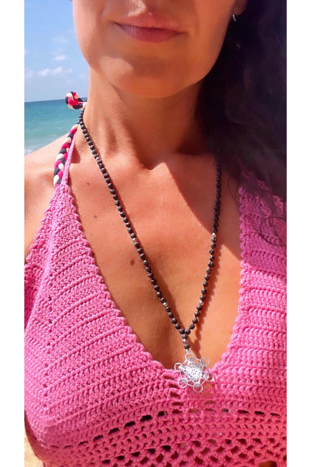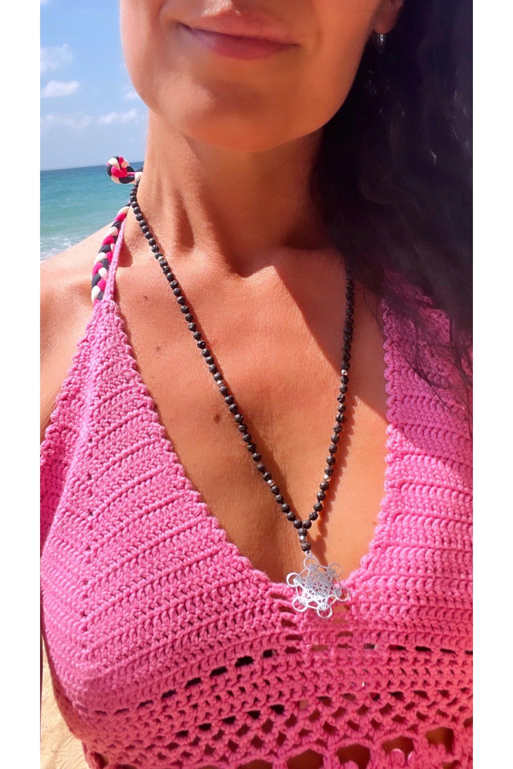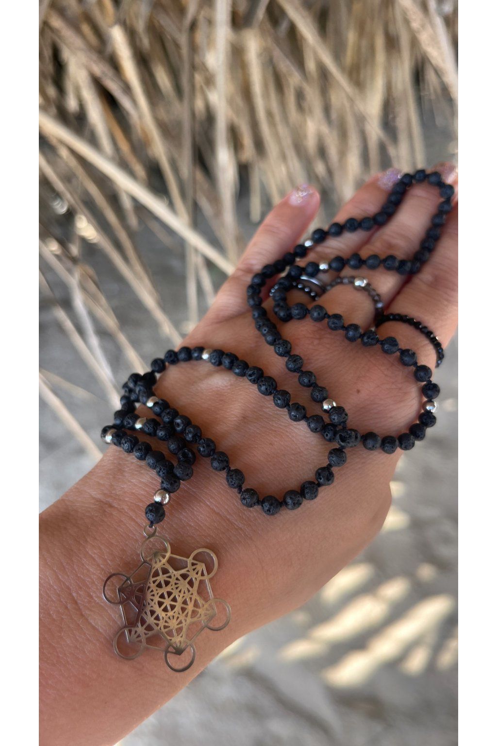 Dámský náhrdelník z minerálů - Láva 4 mm, přívěšek Metatron - ocel stříbrná