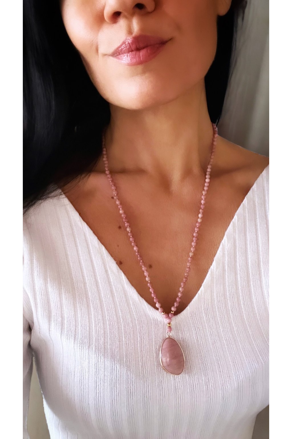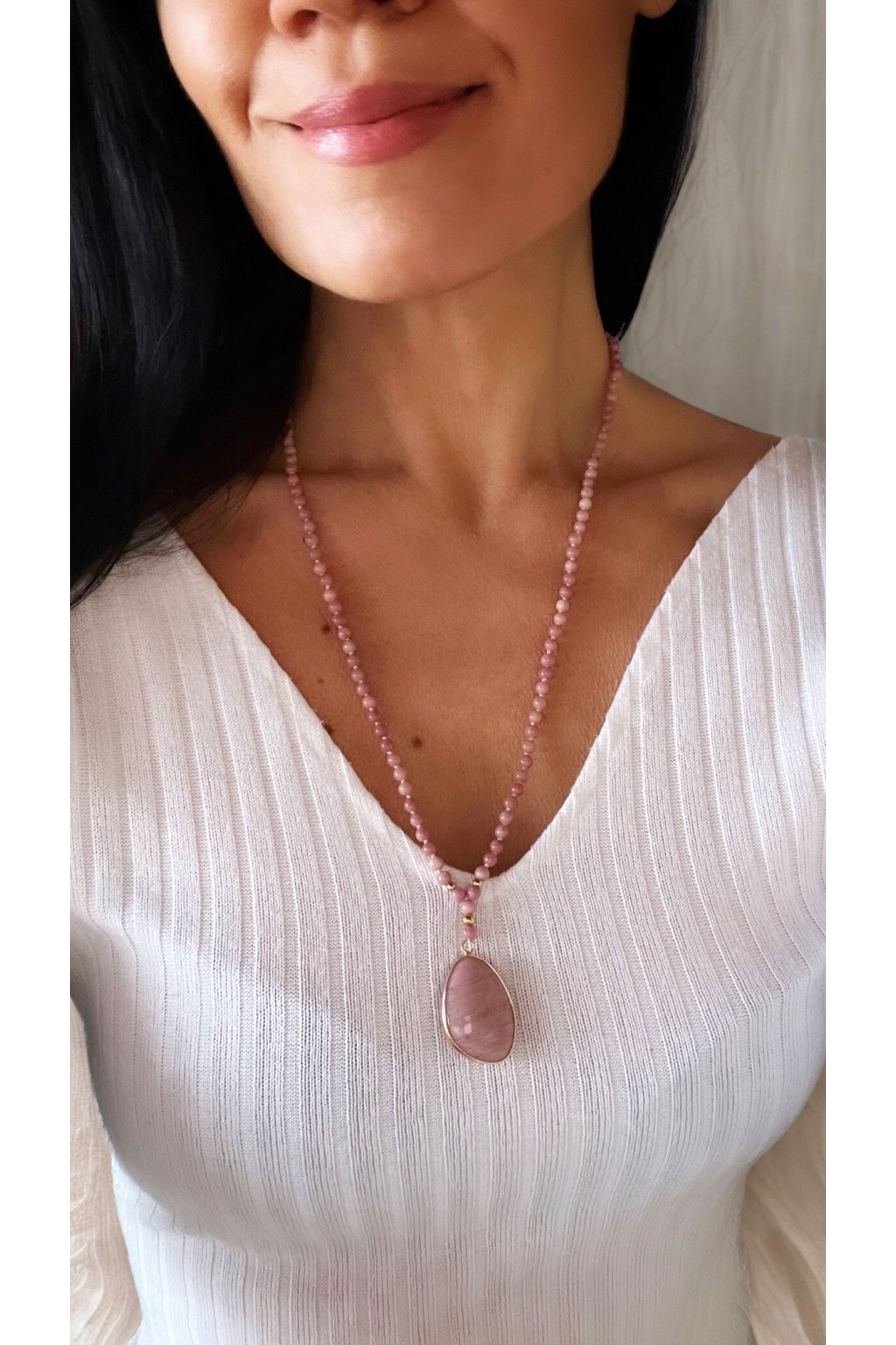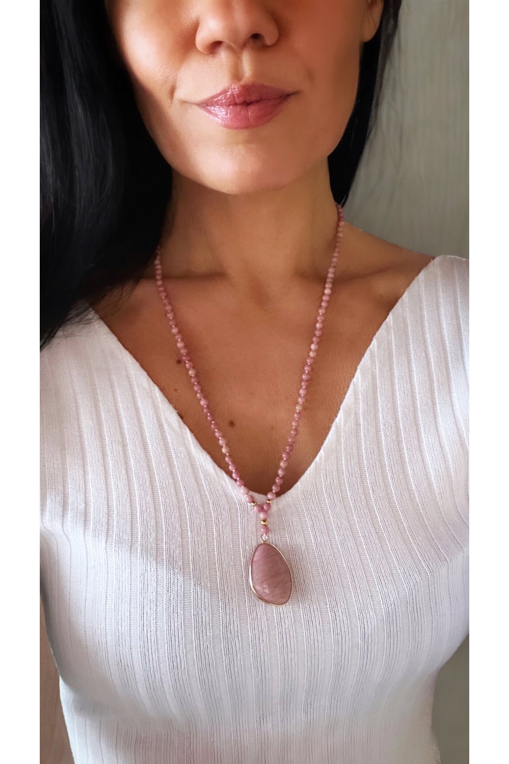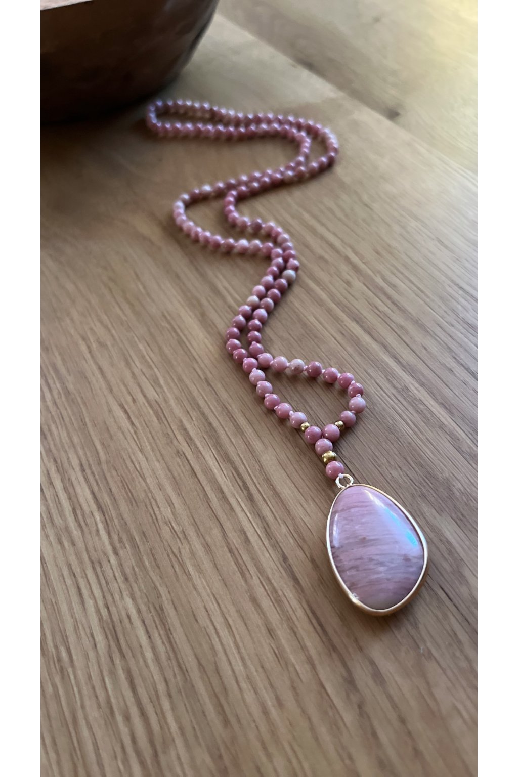 Dámský náhrdelník z minerálů - Rodonit 4 mm, přívěšek Rodonit