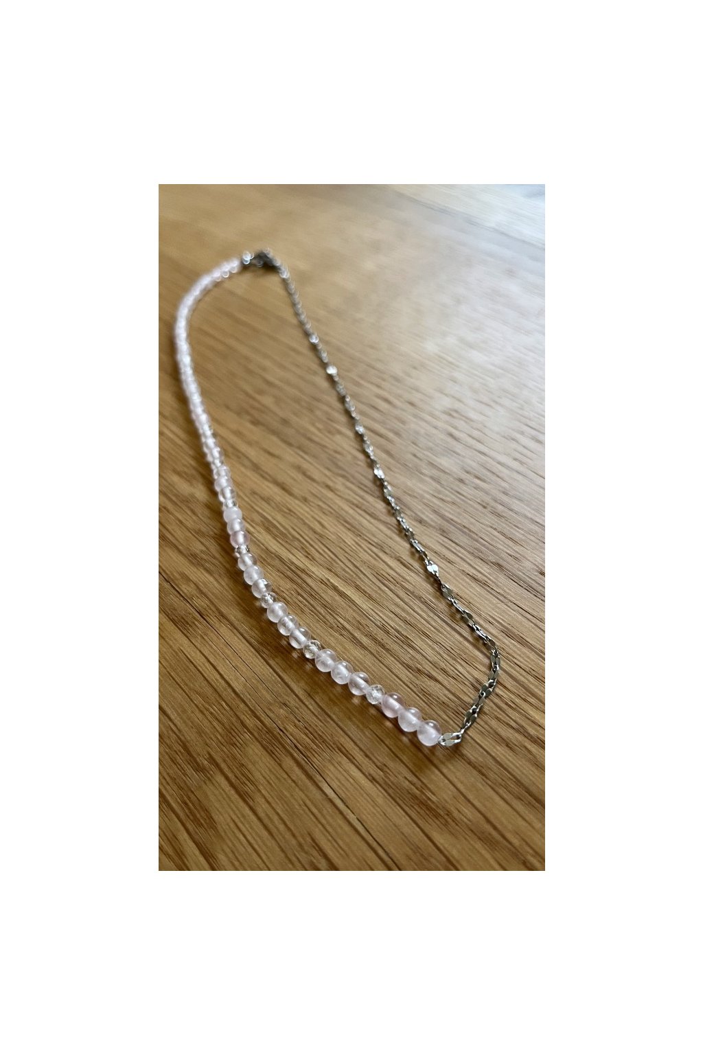 Dámský náhrdelník z minerálů - Růženín 4 mm, Křišťál 3 mm, řetízek ocel zlatý/stříbrný