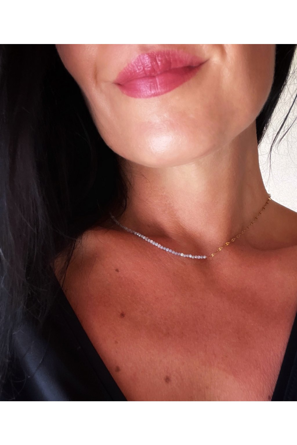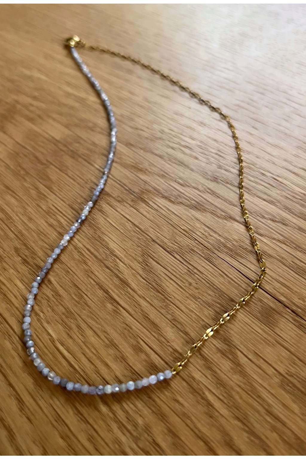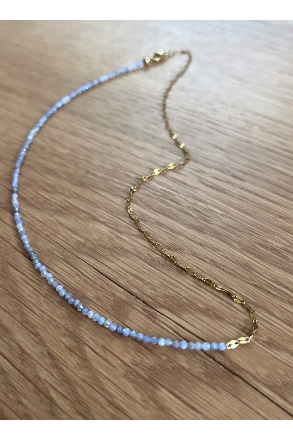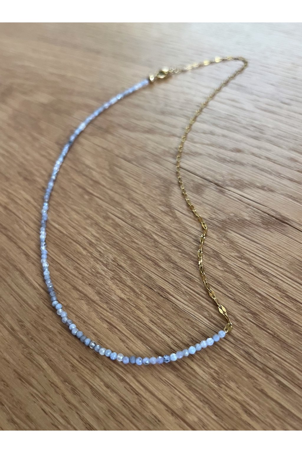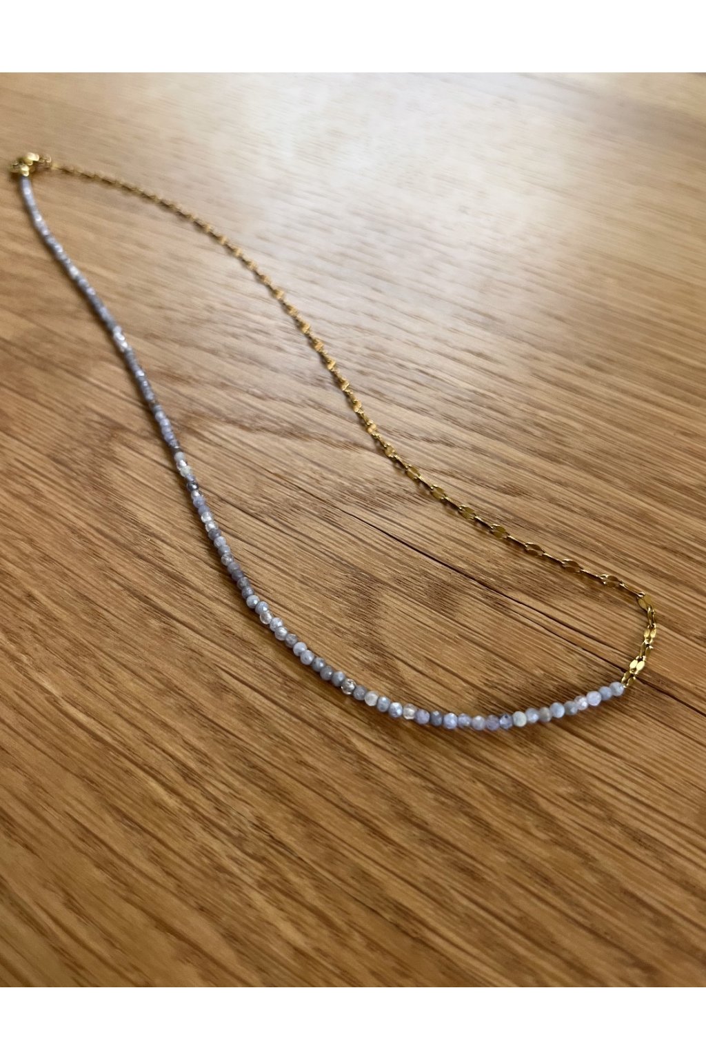 Dámský náhrdelník z minerálů - Tanzanit 2 mm, zlatý řetízek ocel