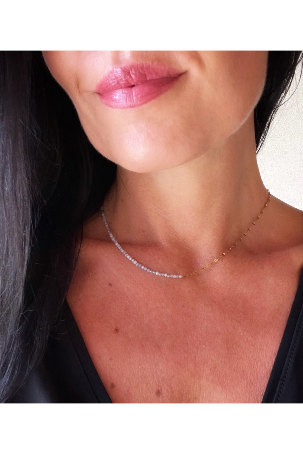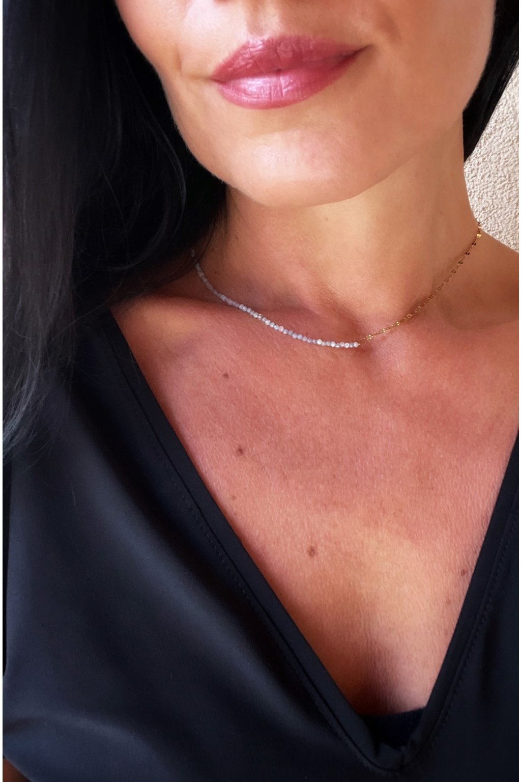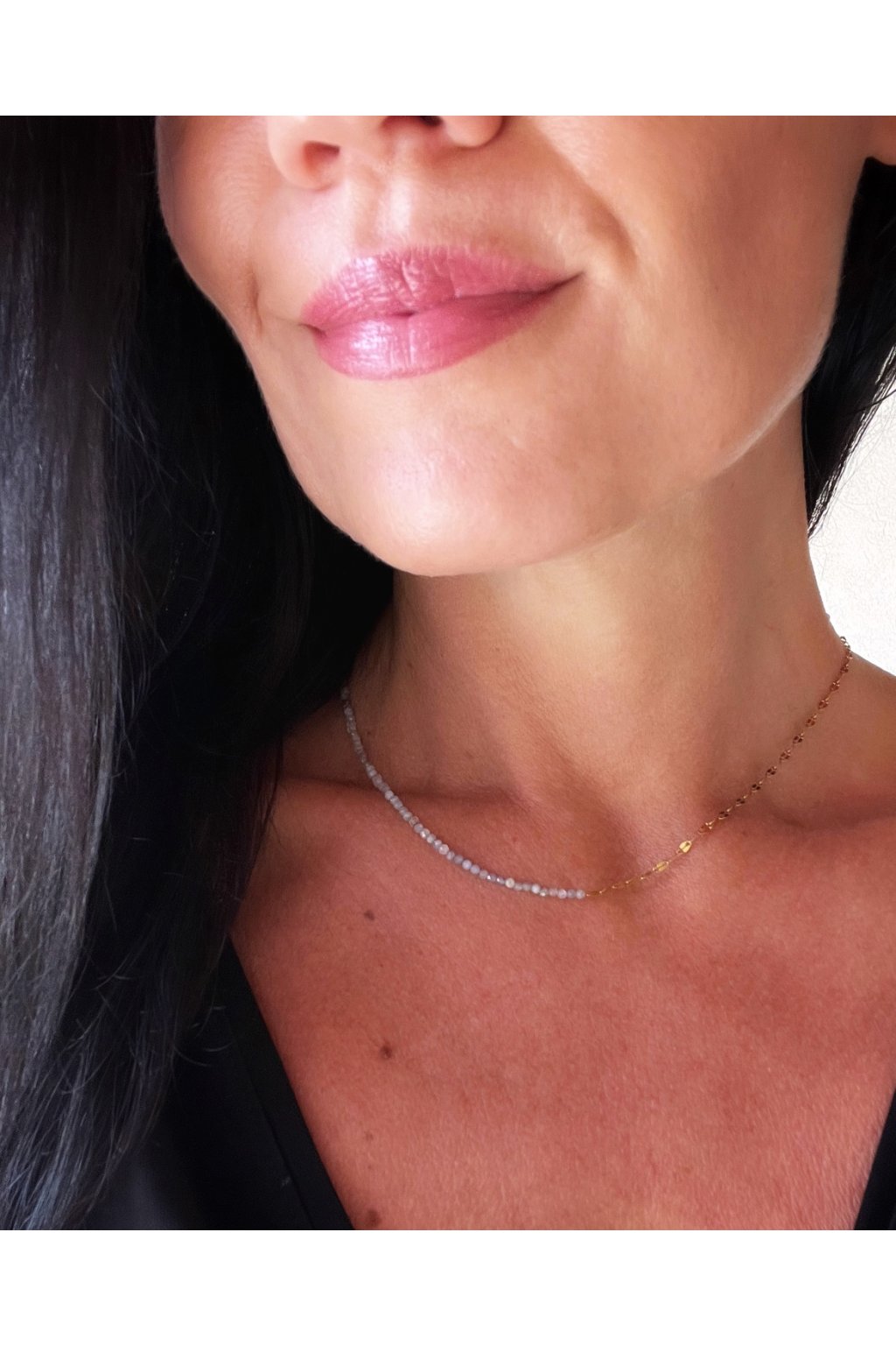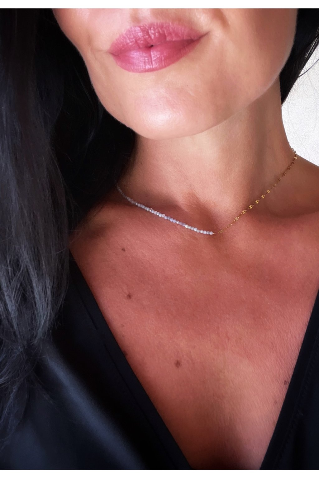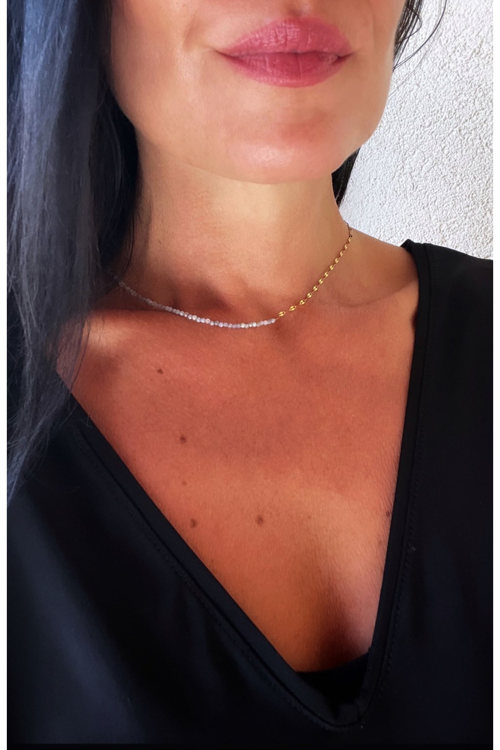 Dámský náhrdelník z minerálů - Tanzanit 2 mm, zlatý řetízek ocel